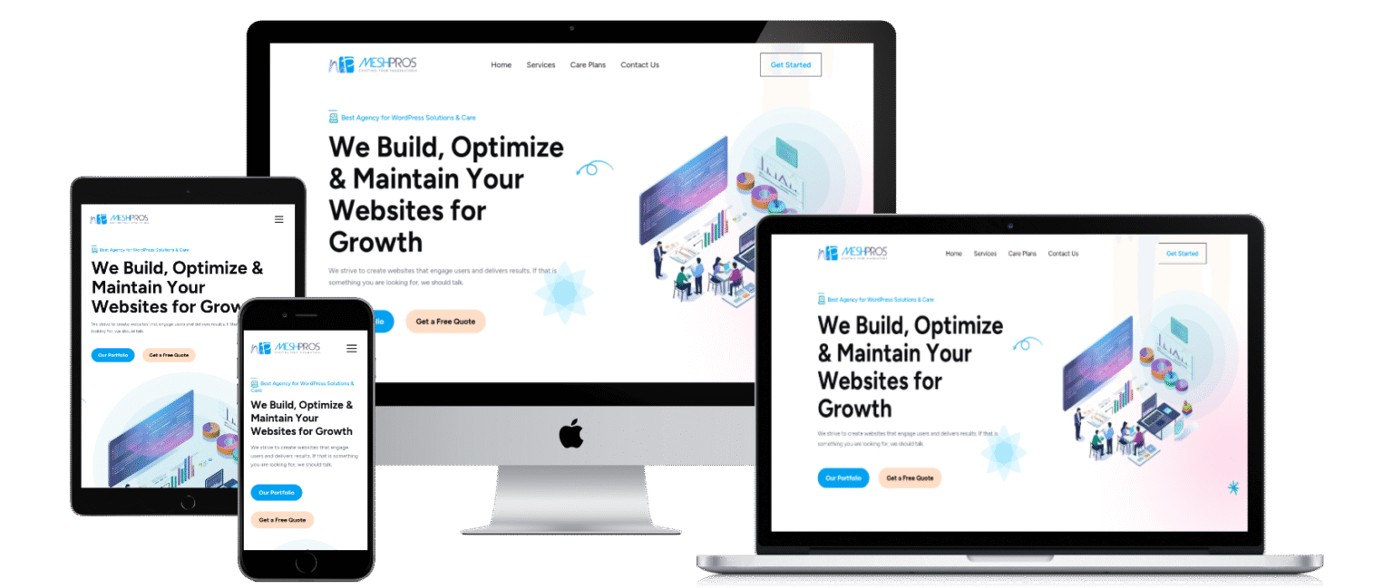 At Meshpros, we build fast, secure, and scalable websites that empower your business to grow online. Whether you need a custom WordPress solution, a business website, or an eCommerce platform, our team ensures your site is mobile-friendly, SEO-ready, and future-proof.